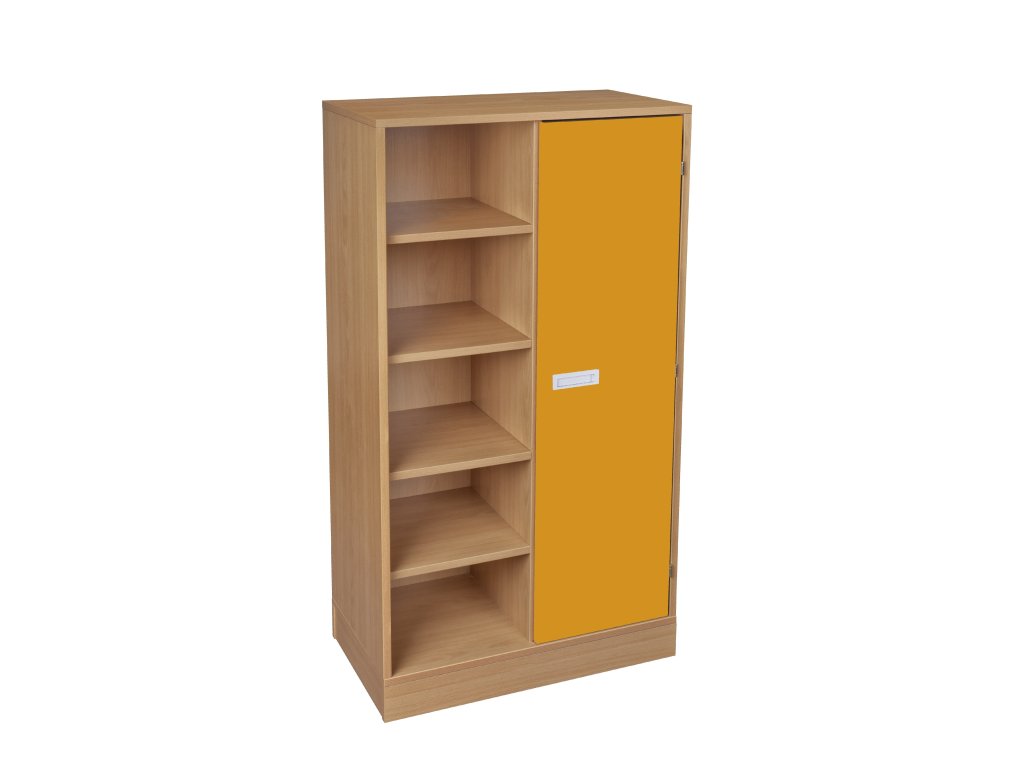 Střední skříň kombinovaná policová jednodvéřová, 70x132x40 cm, z laminované dřevotřísky o síle 18 mm, ABS hrana, provedení se soklem.