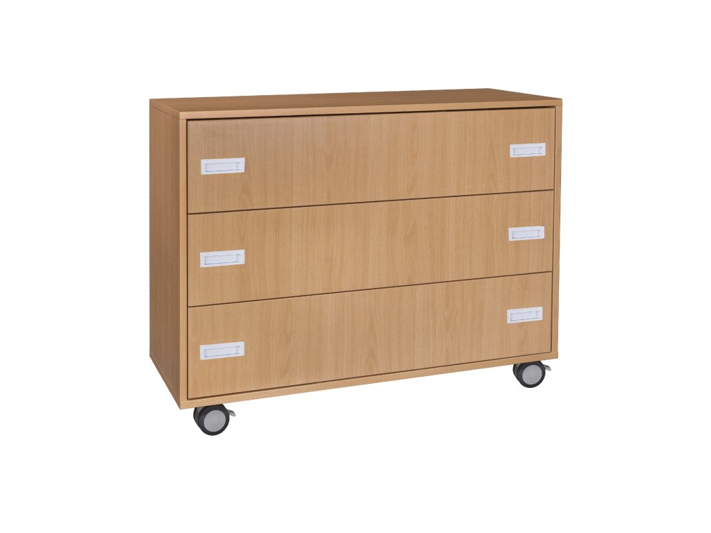 Střední skříň zásuvková, 104x79x40 cm, z laminované dřevotřísky o síle 18 mm, ABS hrana, s kolečky.