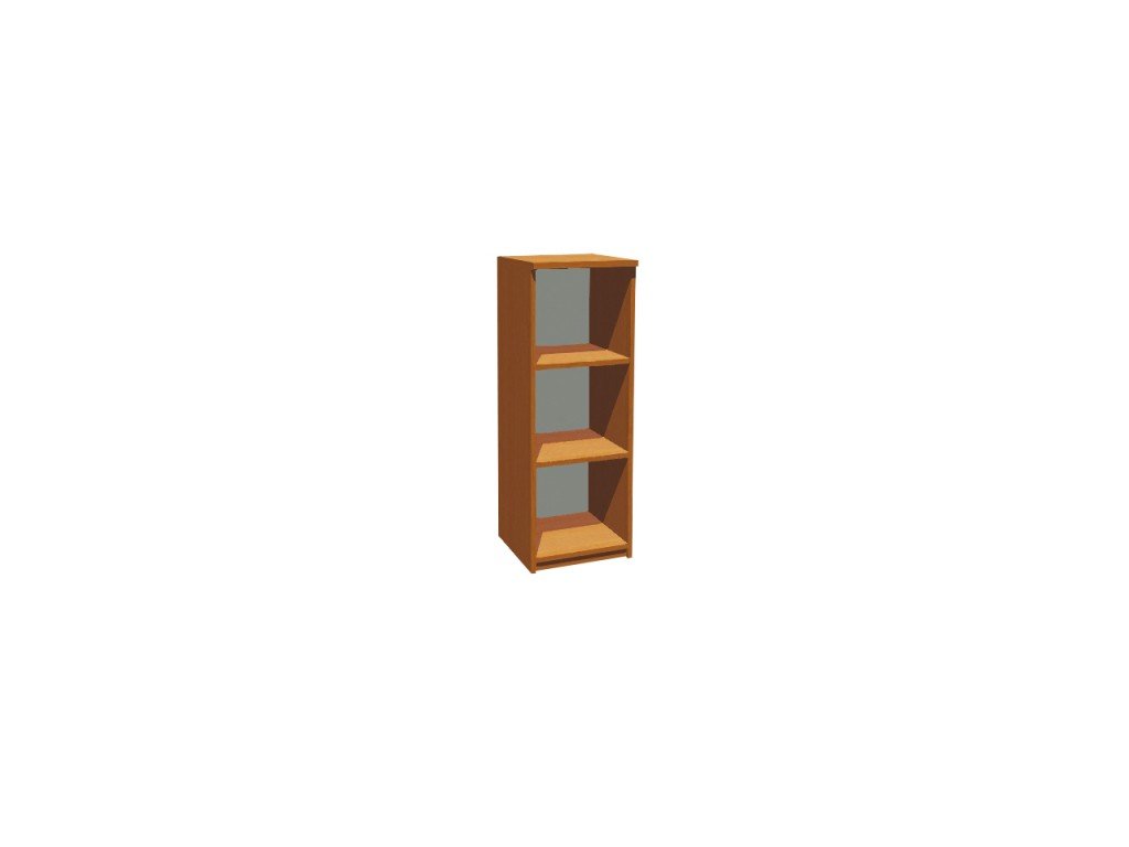 Úzká Školní skříň policová, 40x111x41 cm, z laminované dřevotřísky o síle 18 mm, hrana ABS, dvě police, sokl 40 mm, výběr z několika dezénů.